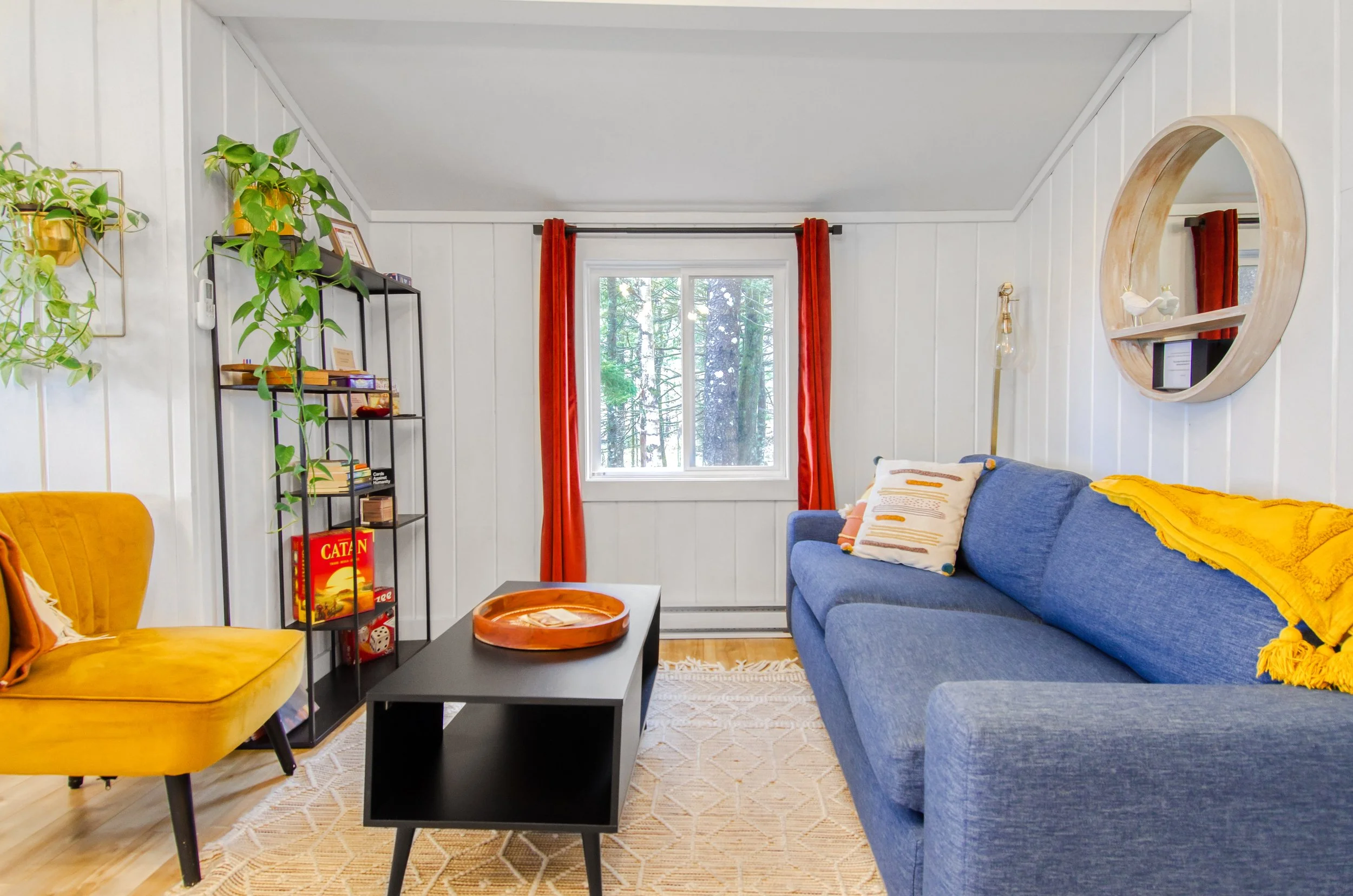 Tucked into the trees on our twenty-three acres lakeside property, the Cottage at Pinewood Escapes is a cozy, two bedroom retreat designed for families and small groups. With a playfully modern aesthetic, our cottage comfortably sleeps six guests, offering the perfect blend of privacy and togetherness.
